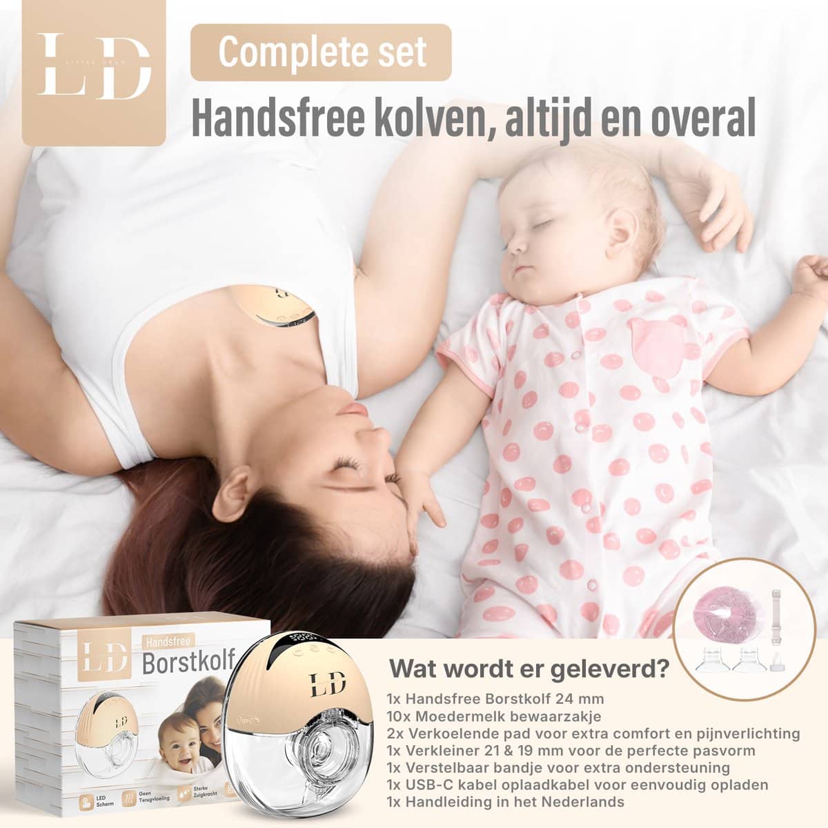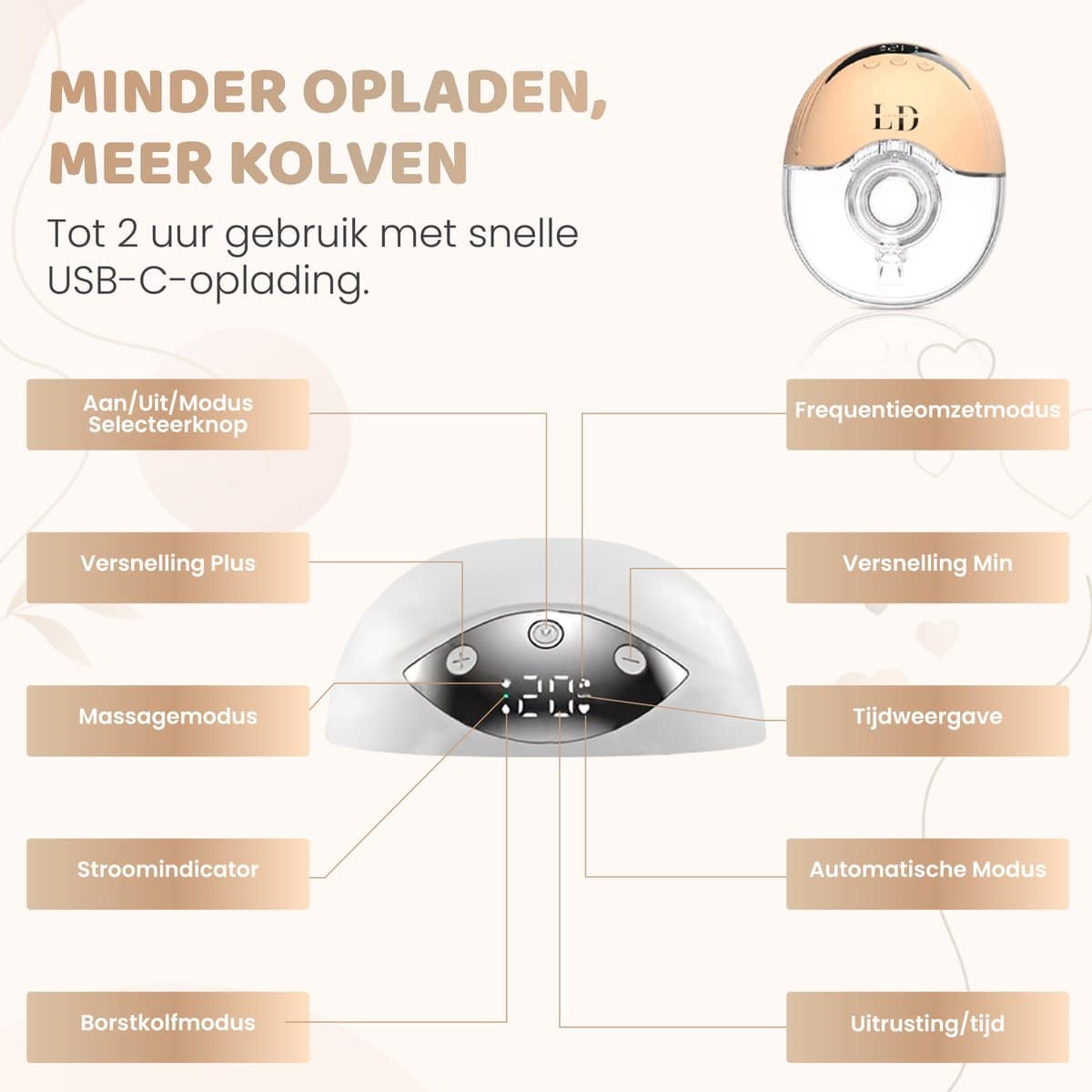 Of je nu een drukke moeder bent die alles uit je dag wil halen of gewoon op zoek bent naar een comfortabele en efficiënte manier om melk te kolven, deze handsfree elektrische borstkolf is dé oplossing. Met een innovatief ontwerp, stille motor en een gebruiksvriendelijke bediening maakt deze borstkolf jouw borstvoeding reis gemakkelijker dan ooit.