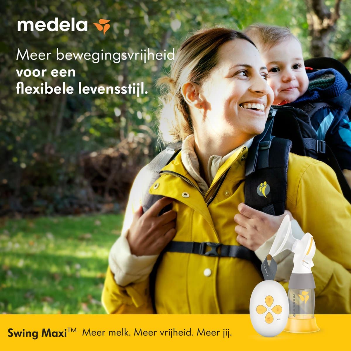 De Medela Swing Maxi dubbelzijdige elektrische borstkolf voor stiller en flexibeler afkolven. De Medela Swing Maxi is ideaal voor moeders met een flexibele levensstijl. Deze compacte borstkolf heeft een stille werking en maakt gebruik van een beproefde technologie, zodat je comfortabel en efficiënt kunt afkolven: dubbel afkolven voor gemiddeld tot wel 18% meer melk in minder tijd, 2-Phase Expression technologie, waarmee het voedingsgedrag van je baby wordt nagebootst en ovale borstschilden met een zachte rand, voor een comfortabele pasvorm en een verbeterde melkstroom. De Medela Swing Maxi heeft een ingebouwde accu die zes afkolfsessies meegaat indien volledig opgeladen.