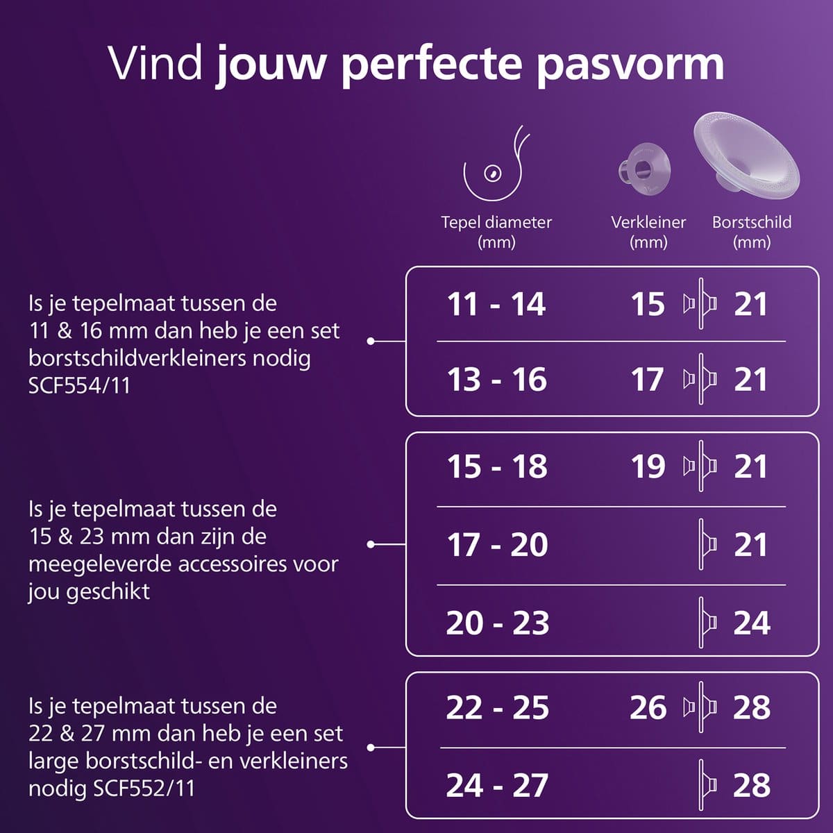 De kolf bootst het natuurlijke drinkritme van je baby na met tot 85 bewegingen per minuut. Dit zorgt voor een efficiënte melkafgifte op een zachte manier. De zachte SkinSense-borstschildjes van siliconen passen zich aan je lichaam aan en zorgen voor optimaal comfort. Dankzij inzetstukken in verschillende maten zit het borstschild altijd perfect.