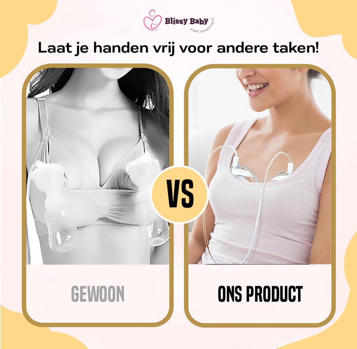 Hier zijn de hoogtepunten van de Blissy Baby Hands-free borstkolf: ✓ Volledig handsfree: de Blissy Baby Hands-free borstkolf biedt ongekende vrijheid, met een compacte kolf die voorzien is van een oplaadbare batterij en draagbare opvangcups, zodat je moeiteloos kunt multitasken.