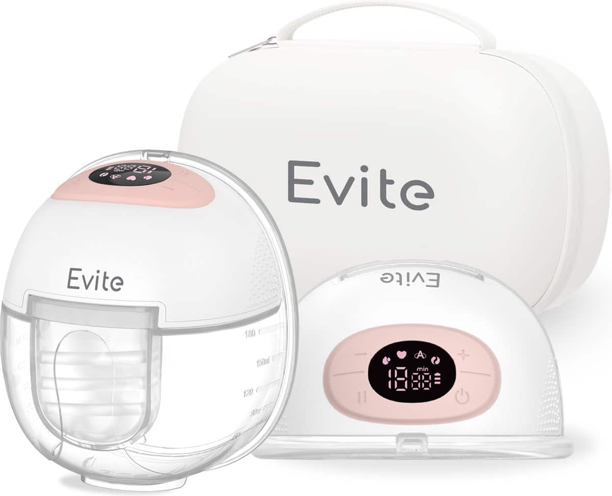Evite Elektrische Draadloze Borstkolf Nova – Handsfree & Draagbaar – BPA-Vrij – Dubbele Borstkolf – Met E-Book – Inclusief Tas – Wit & Roze
