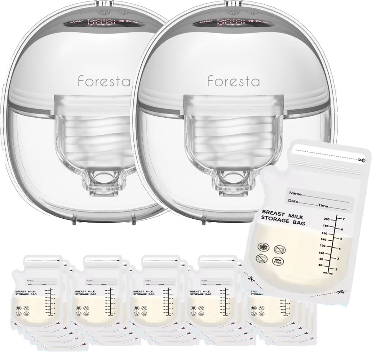 Naast de 2 hands-free borstkolven en 25 moedermelk bewaarzakjes, bevat de Borstkolf Set ook handige accessoires zoals flensen, siliconen opzetstukjes, USB-oplaadkabels, melkcollectoren, beha-verstelgespen en ventielen. Met de Nederlandse handleiding en heb je alle informatie die je nodig hebt binnen handbereik.