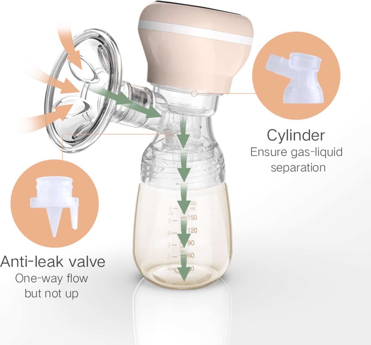 【Terugstroombeschermer】Anti-terugstroomontwerp biedt een hygiënisch gesloten systeem om te voorkomen dat moedermelk terugstroomt in de pomp, infectie te voorkomen en de moedermelk vers te houden. De hoes is gemaakt van 100% veilig hoog siliconen materiaal.